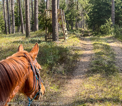 Derlei Assistenten sind hier durchaus zu empfehlen. Denn vor allem in den weitläufigen Wäldern geht leicht die Orientierung verloren, wenn man der Versuchung nachgegeben hat, einen ganz besonders reizvollen Weg abseits von der eigentlich geplanten und markierten Route zu galoppieren. Am Ende des Genusses dann rechts oder links? Osten oder Westen? Bei Sonnenschein kein Problem. Aber ohne? Nun ja. Google Maps, Garmin oder auch die zum Beispiel einfach aufs Smartphone heruntergeladene App Open GPX Tracker markieren den Standort und man weiß wieder, wo man ist und wie es weitergeht.