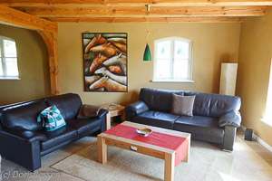 Zwei reetgedeckte Ferienhäuser mit insgesamt vier perfekt eingerichteten Wohnungen für inmsgesamt bis zu 18 Gästen laden zum gemütlichen Wochenende oder auch zu längeren Ferien ein. Und wenn das Wetter einmal nicht so richtig mitspielt oder man sich nach einem anstrengenden Ritt entspannen möchte, lädt ein Saunahaus mit Blick auf die Weiden zum genüsslichen Schwitzen ein.
