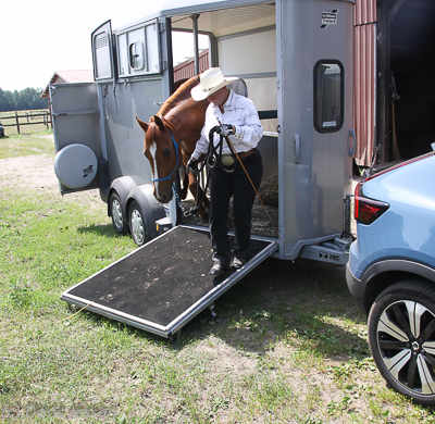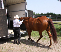 Zeigt das Pferd bereits bei der Annäherung an das Transportfahrzeug Panik, ist Ruhe und Geduld das erste Gebot. Hackls Herangehensweise mag unkonventionell sein, aber oft heiligt der Erfolg die Mittel: „In so schweren Fällen der Panik bringe ich das Pferd vor dem Reiten Schritt für Schritt nahe an den Anhänger, setze mich auf den Kotflügel und trinke eine Tasse Kaffee. Das Pferd soll einfach nur ruhig danebenstehen. Nach zehn Minuten gehen wir vom Anhänger weg zum Reiten. Die Idee: Ich baue keine Erwartungshaltung auf, ich will nicht verladen, ich will nur Ruhe. Nach drei bis vier Tagen ist die Angst in der Regel weg.“