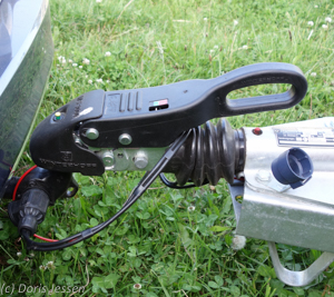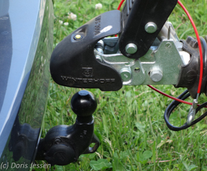 Ein Highlight ist die zumindest teilelektrische Anhängerkupplung. Sie fällt auf Knopfdruck aus ihrer Halterung und kann mit dem Fuß leicht arretiert werden, umgekehrt verfährt man genauso. Endlich hat man sich auch Gedanken über die Steckdose gemacht: Sie ist hier direkt in den Stahlkörper der Anhängerkupplung integriert. Das erspart lästiges Bücken oder gar die Suche auf Knien, um den Stecker in die Dose zu einzudrehen.