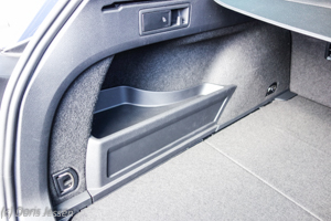 Das Gepäck findet in einem gut durchorganisierten Kofferraum mit 650 bis maximal 1.780 Liter Ladevolumen (mit 2:3, auch vom Kofferraum aus auf Knopfdruck umlegbaren Sitzen) Platz. Um die Gepäckorganisation hat sich VW ebenfalls Gedanken gemacht: In seitlichen, leicht abwischbaren Kunststofffächern findet allerlei Kleinkram sicher Platz, Einkaufstaschen sind an Haken praktisch aufzuhängen und an Verzurrösen kann ein Gepäcknetz eingehängt werden. Gegenstände, die nicht immer im direkten Zugriff sein müssen, verschwinden im doppelten Ladeboden. Die Sichtplane ist auf zwei verschiedenen Stufen einzuhängen.