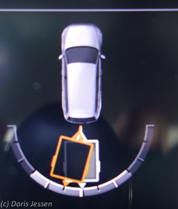 Am Ziel angekommen, sind wir gespannt auf den Parkassistenten. Hat er eine passende Lücke, die allerdings relativ groß sein muss, gefunden, wird sie im Display angezeigt. Hoppla, jetzt braucht man ein wenig Mut oder Vertrauen zur Technik, weil das Gefährt ein wenig zu schnell rückwärts in die Lücke flitzen möchte. Aber er lässt sich natürlich bremsen, der Herr Assistent, so dass wir auch langsam rückwärts einfädeln können. Für ganz kleine Lücken in Deutschlands Innenstädten ist allerdings wieder der einparksichere Fahrer gefragt, sie überfordern das System (noch).