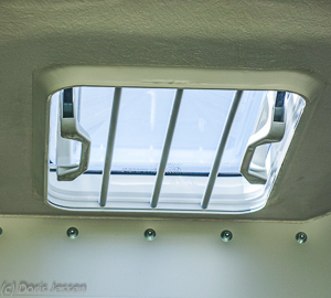 Optimierungsbedürftig ist dagegen der Arretierungsmechanismus für die beiden Türen. Bei Windstille halten sie die Türen zuverlässig offen, norddeutsch typischen Böen hielt das System nicht Stand, die Türen klappten zu. Wir haben uns daher mit einer zufällig vorhandenen Drahtlitze beholfen: Einfach, aber wirksam.