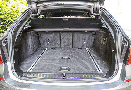 Sehr praktisch haben die Bayern den Gepäckraum gestaltet, dessen Klappe sich elektrisch öffnen lässt: Er bietet zwischen 570 und 1.770 Liter Volumen, je nachdem, ob die vom Kofferraum aus umklappbaren Rückensitzlehnen aufrecht stehen oder flach liegen. Weniger oft gebrauchte Utensilien können im doppelten Boden in zwei separaten Stauräumen untergebracht werden, deren Deckel zum Beladen jeweils aufgestellt werden können. Darin befanden sich auch das Gepäcknetz und Netztrenngitter, letzteres ist einfach zu montieren. Clever gemacht: Die Laderaumabdeckung rollt beim Öffnen der Hecktür automatisch zurück und schließt sich beim Zuklappen wieder. Fährt allerdings ein Hund mit, kann sie manuell ausgehakt werden. Der Hund freut sich im Übrigen bei Pausen über das separat zu öffnende Heckfenster: So hat er mit frischer Luft alles im Blick und ist doch sicher aufgehoben.