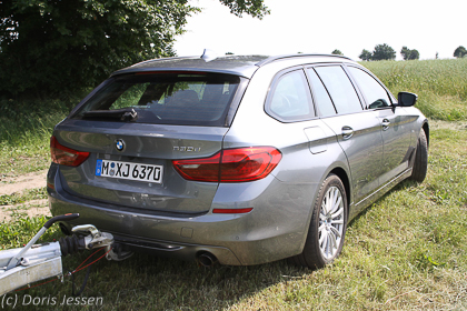 265 PS und 6200 Newtonmeter Drehmoment im niedrigen Tourenbereich sind Garanten für ein starkes Zugvermögen für Pferdeanhänger, leider aber nur bis 2 Tonnen. Mit diesem Gewicht spielt der 5er im Pferdeanhänger-Zugfahrzeugtest aber geradezu, beschleunigt mit Bravour auf die mit seinen 1815 kg Leergewicht erlaubten 100 km/h. Auf lang(weilig)en Anhängerfahrten, die überwiegend auf der rechten Autobahnspur oder auf der Landstraße hinter LKW stattfinden, entspannen die beschriebenen Assistenten die Fahrt und helfen Geld zu sparen, wenn sie z.B. über ein Überholverbot speziell für Gespanne informieren.