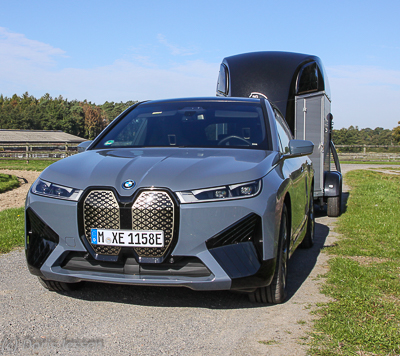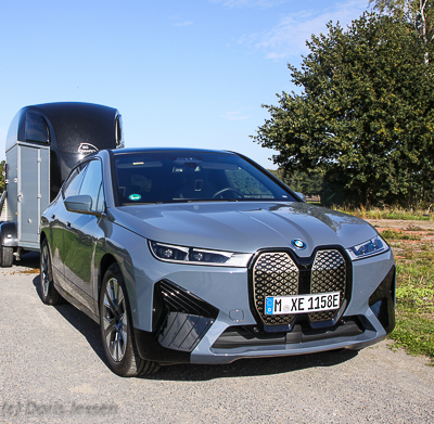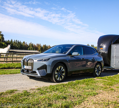 Elektrofahrzeuge erobern den Markt. Doch wie sieht es aus mit kräftigen Zugfahrzeugen für den Pferdeanhängerbetrieb? BMW ist mit seinem neuen Elektro Sports Activity Vehicle (SAV) BMW iX xDrive50 ganz vorne: Mit 2,5 Tonnen Anhängelast ist er derzeit das stärkste Allrad-Zugpferd unter den in Europa verfügbaren Elektrofahrzeugen. Im Pferdeanhänger-Zugfahrzeugtest zog der BMW iX Xdrive50 seine Lasten mit seinen 385 kW (523 PS) und 765 Nm Drehmoment lautlos wie nichts vom Fleck. Dazu beeindruckte er durch hochkomfortable Fahrfreude, Langstreckentauglichkeit und sein futuristisches Design – außen wie innen. Ab 102.500 Euro ist das Luxus-SAV zu haben.