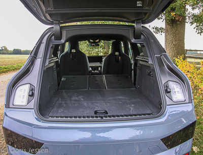 Auch im für Pferdesportler so wichtigen Kofferraum bietet das große SAV mit 500 Litern ausreichend Platz für größeres Ladegut, seien es nun Futtersäcke oder Späneballen. Reicht die normale Länge nicht aus, können die Rücksitze per Knopfdruck umgelegt werden und erweitern damit den Raum auf 1.750Liter. Trotz der starken Hochvoltbatterie, die im Fahrzeugboden untergebracht ist, können Ladekabel oder anderes Staugut im doppelten Boden untergebracht werden.