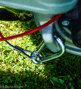 Die Anhängerkupplung fährt auf Knopfdruck elektrisch aus, ein Klick signalisiert das korrekte Einrasten. Sehr schön, die Finger bleiben sauber. Auch die Fingernägel bleiben dran, weil sich die Steckdosenklappe direkt am Kupplungskörper befindet und daher leicht zugänglich ist. Für Fahrten in Nachbarländern wie zum Beispiel in der Schweiz oder den Niederladen wichtig: Das Bremsseil kann hier an einer dafür vorgesehenen Öse eingehakt werden.