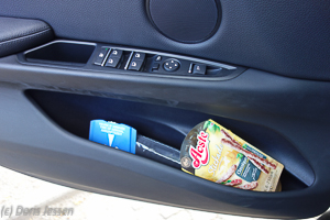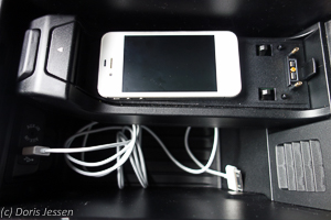 Die Größe vermittelt, sobald man den hohen Einstieg überwunden und es sich auf den bequemen elektrisch einstellbaren Ledersportsitzen bequem gemacht hat, den Eindruck einer gewissen Souveränität. Man blickt über die Breite des nobel lederbezogenen Armaturenbrettes, freut sich, dass in den vielen Ablagen jedes Ding seinen Platz findet, vom Schlüssel im kleinen Kästchen links unter dem Beleuchtungsschalter über die Flaschenhalter bis hin zu den Türfächern, dem großen Fach mit Handy-Ladestation unter der Mittelarmlehne und dem Handschuhfach, das so einiges wegschluckt. Auch die hinteren Passagiere können es sich mit großer Bein- und Kopffreiheit super bequem machen.
