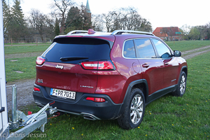 Wir haben es aus guten Grund nicht ausprobiert, aber es ist doch beruhigend zu wissen: Zusammen mit dem ESP ist der Cherokee mit einer Anhängerstabilisierung ausgestattet, deren Sensoren das übermäßige Schwanken des Anhänger erkennen, und die entsprechenden Maßnahmen einleiten, um die Schlingerbewegung aufzuhalten.