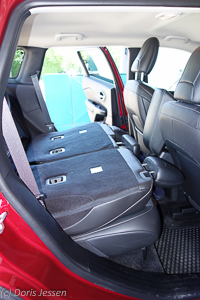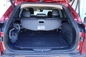 So komfortabel der Innenraum für Fahrer und alle Mitreisenden ist, so knapp ist umgekehrt der Kofferraum. Er öffnet sich – genial – auf Knopfdruck aus dem Innenraum oder an der Fernbedienung und bietet im Normalzustand gerade einmal 412 Liter, die sich durch Umlegen der Rücksitze auf 1.267 Liter erweitern lassen. Der zuvor getestete Subaru Outback brachte es auch 559 bzw. 1.848 Liter. Wer überwiegend zu zwei unterwegs ist, sollte aber dennoch damit auskommen. Sehr praktisch ist das sog. „Cargo Management System“ mit Seitenfächern und Haken zum Sichern kleineren Ladegutes. Als extrem praktisch erwies sich die Kofferraum-Wendematte, die auf der einen Seite mit Stoff, auf der anderen mit einer genoppten und rutschfesten Gummimatte beschichtet ist. Da hat man sich doch endlich einmal nicht nur über Chic, sondern auch den wahren Einsatz eines geländetauglichen Fahrzeugs Gedanken gemacht.