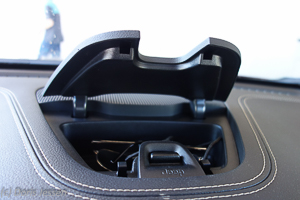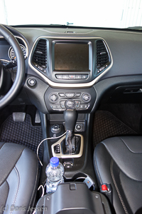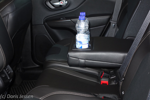 Gut ausgestattet ist der Cherokee im Passagierraum mit allerlei Ablagen und Staufächern in den Türen in der Mittelkonsole. Dort befindet sich auch eine rutschfeste Matte zum kabellosen Aufladen eines Handys. Für diese magnetische Induktionsladestation muss das Smartphone allerdings mit einer dafür geeigneten Hülle ausgestattet sein. Die Ablage eignet sich aber auch für das normale Laden, weil das Gerät dort sicher aufgehoben ist.