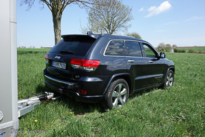 Egal ob mit oder ohne Pferdeanhänger: Der Jeep Grand Cherokee ist dank seiner Motorisierung mit einem 3.0 V6 Turbodiesel und 250 PS (184 kW) im permanenten Vierradantrieb spurtstark unterwegs und stellt sein größtes Drehmoment von 570 Newtonmetern bei 2.000 Umdrehungen zur Verfügung. Selbst mit dem 3,5 Tonnen schweren und großvolumigen Ifor Williams Eventa Pferdeanhänger, der durch seine Wohnwagenform eine eher ungünstige Aerodynamik aufweist, war die Beschleunigung nicht nur anfangs, sondern auch bei 100 km/h und darüber, zum Beispiel auf der Beschleunigungsspur der Autobahn, nicht das geringste Problem und das Gespann lag jederzeit satt auf der Straße. Dafür mag auch die Anhängerstabilisierung, eine Erweiterung des ESP-Systems sorgen. Dank des serienmäßigen Achtstufen-Automatikgetriebes geschehen die Schaltvorgänge selbst beim Kickdown unbemerkt, was vor allem auf kurvigen Landstraßen sehr angenehm ist. Man könnte mit Wippen manuell schalten, aber wer braucht das schon…. Mit 11,6 Metern Wendekreis ließ sich das Gespann auch gut rangieren.