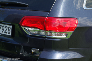 Trotz zahlreicher Überarbeitungen erkennt man auf den ersten Blick: Das ist ein Jeep. Die Karosserie des Grand Cherokee ist mit 4,82 Metern Länge, 1,94 Metern Breite (ohne Außenspiegel) und 1,80 Metern Höhe massig, die Front trägt die markentypischen sieben senkrecht verlaufenden Lüftungsöffnungen im ikonischen Kühlergrill, dazu kommen markante Bi-Xenon Hauptscheinwerfer, in denen, wenn man ganz genau hinsieht, rechts ein kleines Bildchen des „Ur-Jeep“ und links der Schriftzug „Since 1941“ zu sehen ist.