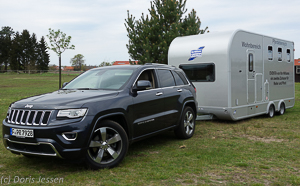 Wenn ein Auto einem Traum nahe kommt, dann ist es der Jeep Grand Cherokee in der luxuriösen Ausstattung „Overland“. Für Reiter und ihre teilweise gepäckreichen Reisen steht ein voluminöser Laderaum zur Verfügung, die Anhängerkupplung schwingt elektrisch aus ihrer Halterung und wer einen wirklich großen Anhänger mit mehr als drei Tonnen schleppen möchte: Bis zu 3,5 Tonnen Anhängelast sind für den Jeep mit seinem 3-Liter Sechszylinder Dieselaggregat kein Problem. Nur der Preis mag ein jähes Erwachen bringen: 65.900 Euro kostet die Overland-Ausstattung.