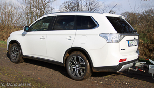 Rundum ein elegantes SUV ohne Schnörkel und optische Spielereien – das ist der erste äußere Eindruck des strahlend weißen Outlander-Testwagens, der sich für mit-Pferden-reisen.de hauptsächlich für den Reitereinsatz beweisen sollte. Fangen wir also – für Fahrzeugberichte ganz unorthodox – mit der für uns wichtigen Eigenschaft an: Dem Zugbetrieb.