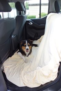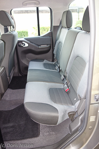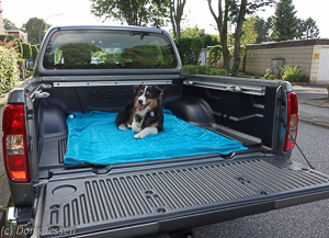 Gut Platz haben die Passagiere auf den Rücksitzen, die ab der SE-Version auch komplett oder 2:3 Richtung Rücklehne hochzuklappen sind. Das bewährt sich für Gepäck, das, wir leben hier nicht im trockenen Arizona, trocken bleiben soll. Auch für Hundebesitzer ist der so geschaffene Raum eine Option, da die Vierbeiner hier nicht auf der offenen Ladefläche Platz nehmen sollten, auch wenn wir dies in den USA oft genug beobachtet haben. Unsere Australian Shepherd Hündin fand als „Testhund“ hinter dem Fahrersitz ein gemütliches und vor allem sicheres Plätzchen. Um die unvermeidlichen Hundehaare im Innenraum in Grenzen zu halten, eignet sich ein einfaches Spannbettlaken, von den hinteren Kopfstützen bis über die Teppiche im Fußraum gezogen wird. Auch Gepäck kann so sicher transportiert werden, ohne bei einer Vollbremsung zur Gefahr zu werden.