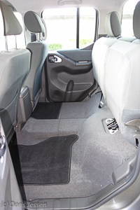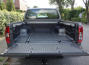 Da der Navara sein maximales Drehmoment von 450 Nm bereits bei 2.000 Umdrehungen zur Verfügung stellt, zieht er auch schwerere Lasten mühelos vom Fleck, dank unauffällig arbeitendem Fünfgang-Automatikgetriebe ohne manuelles Schalten. Und das nicht nur auf gepflegten Straßen, sondern auch im matschigen Gelände oder auch auf Wiesenparkplatzen. Bei schlammigen Böden ist es jetzt an der Zeit, vom auf der Straße empfohlenen 2WD-Hinterradantrieb zunächst auf den 4WD H Allradantrieb umzustellen, in dem die Antriebskraft zu gleichen Teilen auf beide Achsen verteilt wird. Wird es noch tiefgründiger, ist die Einstellung 4WD Low angesagt. Der Testwagen war zusätzlich mit einer optional erhältlichen Hinterachsdifferentialsperre ausgestattet, die auch tiefstes Gelände meistern soll. Seine für diese Einsatzzwecke Robustheit erhält er durch die stabile Leiterrahmenkonstruktion und durch Nutzfahrzeug-typische Blattfedern.