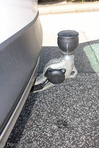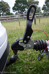 Erfreut entdecken wir vor der ersten „Pferdefahrt“ die halbautomische Anhängerkupplung, die es im Zubehör für 850 Euro gibt, inklusive Anhängerstabilisierungssystem. Die Kupplung ist unterhalb der Stoßstange verborgen, einfach an einem Griff herunter zu ziehen und rastet mit einem kleinen Handgriff hörbar ein. Die Steckdose für die Anhängerbeleuchtung ist gut zugänglich in den Stahlkörper integriert, so dass das Eindrehen des Steckers ruckzuck erledigt ist.