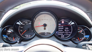 Der Testwagen wird traditionell mit Zündschlüssel – porschetypisch links – gestartet. Um den kräftigen Sound zu genießen, muss man allerdings die Tür zunächst offen lassen, weil die Geräusch- und Wärmeschutzverglasung so hervorragend ist, dass lediglich ein sonores Brummeln im Fahrerraum ankommt.