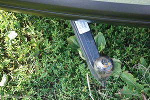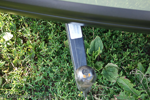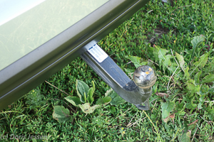 Die Anhängerkupplung gleitet auf Knopfdruck aus ihrer Halterung und rastet hörbar ein.