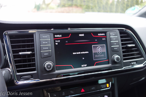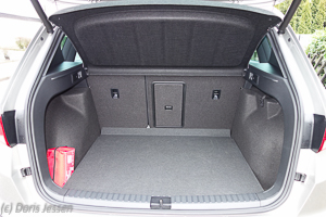 Wer nun glaubt, aus diesen Maßen resultiere drangvolle Enge im Passagier- und Gepäckraum, der irrt: Die heizbaren Ledersportsitze geben guten Seitenhalt und sind auch für große Personen sehr bequem, Bein- und Kopffreiheit ist auf allen Plätzen genügend vorhanden. Rückenempfindliche Reiter dürften sich zudem über die Lordosenstütze freuen. Frischluftfanatiker können ein großes Panorama-Glasdach ordern, das zur Hälfte geöffnet werden kann und über Sonnenschutzrollo verfügt. Umgekehrt kann man an kühlen Tagen die Standheizung entweder mit der Fernbedienung kurz vor dem Einsteigen anschalten oder sie im Bordcomputer sogar programmieren, damit morgens die Scheiben frei sind und der Innenraum mollig warm. Großen Wert hat SEAT auf vielfältige und umfangreiche Ablagen und Staufächer gelegt: Schubladen unter den Vordersitzen, Ablagen in den Türen, in der Mittelkonsole sogar mit Handy-Ladestation und ein großes Fach unter der höhenverstellbaren Armlehne.