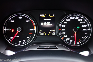 Von der Anhängelast befreit, ist das kleine SUV eine gelungene Kombination aus komfortablem Reisemobil und flottem Sportler mit moderat straffer Federung, der in allen Fahrsituationen so richtig Spaß macht: Vor allem im Sportmodus sprintet der Ateca von 0 auf 100 in rasanten 7 Sekunden und auch bei 200 km/h klebt er noch satt auf der Straße. Keine sonst für SUVs oft so typischen Wankbewegungen stören die ruhige Fahrt. Lediglich im Eco-Modus reagiert der Kickdown etwas schleppend, was für sparsame Fahrten aber auch in Ordnung ist. Bis 212 km/h kann man ihn schicken, wenn die Verkehrsverhältnisse auf der Autobahn das irgendwann einmal zulassen.