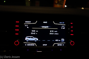 Als für das „kleine Fahrzeug“ ausgesprochen großartig empfanden wir das Infotainment und die Fahrerassistenzsysteme, die Wettbewerbern der sog. Premiummarken leicht das Wasser reichen können, wenn sie diese nicht sogar noch übertreffen. Und das nicht nur in Umfang und Vielfalt, sondern vor allem in der absolut selbst erklärenden Einfachheit: Ob es um die Klimatisierung, das Abrufen einzelner Bordinformationen oder die Navigation geht, das Koppeln des Smartphones oder Audio-Streaming via Bluetooth oder je zwei USB oder SD-Kartensteckbuchsen: Alles ist mit einem Fingerzeig auf dem großen Touchscreen oder über Sprachbefehle steuerbar. Das Kombiinstrument direkt im Blick des Fahrers informiert auf einen Blick über alle wichtigen Fahrdaten.