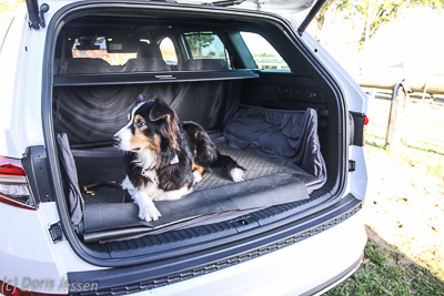 Als wirklich praktisch und dem Škoda-Slogan „Simply Clever“ entsprechend haben wie die Wendematte im Kofferraum empfunden, die auf der einen Seite mit dem üblichen Nadelfilz, auf der anderen aber mit abwaschbarem Kunststoff beschichtet ist. Schmutziger Hund? Egal. Der Sand aus Sydneys Fell, an Bauch und Beinen angesammelt auf 20 Kilometern Ausritt und zahlreichen „Hundebädern“, wird einfach ausgekippt. Viel mehr als nur Simply Clever.