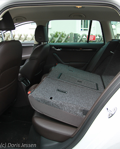 Legt man die 3:2 teilbaren Rücksitze um, wächst der Kofferraum von 610 auf 1.740 Liter Ladevolumen, die Länge reicht bei umgelegtem Vordersitz sogar für 2,92 Meter lange Gegenstände. Die Ladekante liegt mit 63 Zentimetern angenehm tief.