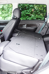 Interessant ist auch die Variante, die Sitzfläche(n) der zweiten Reihe nach hinten gegen die Rückenlehne hochzuklappen. So können zum Beispiel Einkaufstaschen auf einer relativ großen Stellfläche aufrecht hinter dem Fahrersitz untergebracht werden.