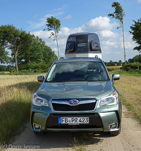 Speziell Turnierreiter oder solche, die gerne ins Gelände zum Ausreiten fahren und sich auch bei nassem Wetter auf unbefestigte Waldparkplätze wagen, kennen das Problem: Die Reifen (vor allen heckgetriebener Fahrzeuge) drehen auf Wiesen oder matschigem Untergrund durch und mit Glück gibt es einen Traktor, der einem aus der nassen Patsche hilft. Das wird mit dem Forester nicht passieren: Seit viele Jahren setzt Subaru auf den bewährten Allradantrieb „Symmetrical AWD“. Er passt die Verteilung des Antriebsmomentes auf die Vorder- und Hinterräder an. Dadurch ist immer für optimalen Grip und Stabilität in Abhängigkeit von Bodenbeschaffenheit und Fahrweise gesorgt. So war auch auf nassen Wiesen jederzeit ein sicheres Durch- und Ankommen gewährleistet.
