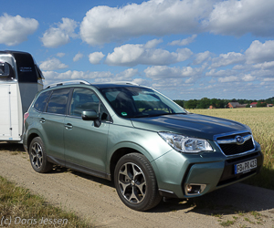 Der neue Subaru Forester 2.0D Sport zeigte sich im Pferdeanhänger-Zugfahrzeugtest als kompaktes und praktisches SUV mit sehr gefälligem Exterieur und serienmäßigem permanentem Allradantrieb, das sich durch gutes Fahrverhalten und sehr sparsamen Verbrauch auszeichnet. Im Anhängerbetrieb könnte die Beschleunigung etwas flotter sein. Schade ist auch, dass es keinerlei moderne Assistenzsysteme wie Abstandskontrolle oder Spurassistent gibt. Der Einstiegspreis liegt bei 40.700 Euro, das Testfahrzeug war zudem mit Metallic-Lackierung (560 Euro) und natürlich Anhängerkupplung (980 Euro) ausgestattet.