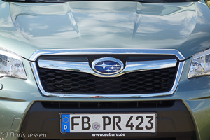 Rundum sportlich-elegant, dabei kompakt und praktisch: Das war der erste Eindruck im Pferdeanhänger-Zugfahrzeugtest des neuen Subaru Forester Modelljahrs 2015. Mit Abmessungen von 4,59 m Länge, 1,79 m Breite und 1,73 m Höhe ist er nicht zu klobig, sondern vermittelt eher einen handlichen Eindruck. Für einen Allradler mit Namen „Forester“ passend, ist unser Testfahrzeug in „Jasmine Green Metallic“ im Unterbodenbereich durch schwarze Kunststoffblenden gegen Kratzer geschützt. Die beiden Lufteinlässe seitlich der Frontschürze unterstreichen den sportlichen Charakter und wir freuen uns aufs Einsteigen und die erste Probefahrt, naturgemäß ohne Anhänger, denn den kuppeln wir erst im Reitstall an.