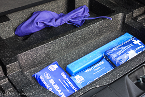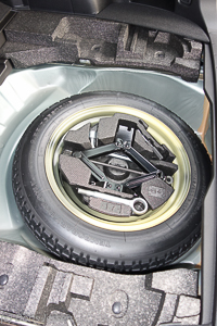 Heutzutage keine Selbstverständlichkeit mehr: Der Wagen enthält ein volles Ersatzrad samt Werkzeug im doppelten Boden des Kofferraumes. Leicht zugänglich finden sich dort auch Verbandszeug und Warnweste.