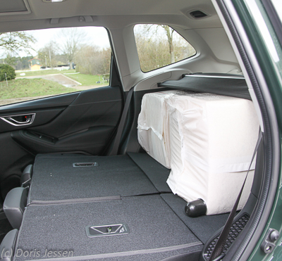 Ein ganz wesentlicher Aspekt für Pferdesportler ist der Laderaum: Egal, ob ein Sattel zur Reparatur muss, Späneballen oder 25-kg-Futtersäcke geholt werden, der Forester bietet dafür Platz und Komfort beim Ein- und Ausladen: Die Hackklappe öffnet sich elektrisch, die Öffnung ist breit und im rechtwinkligen Design gestaltet. Der mit der Ladekante abschließende Ladeboden ermöglicht es, zum Beispiel schwere Späneballen einfach einzuladen und vor allem ohne Rückenschäden kraftsparend wieder auszuladen, indem man sie ganz simpel über die Kante in die Schubkarre zieht.