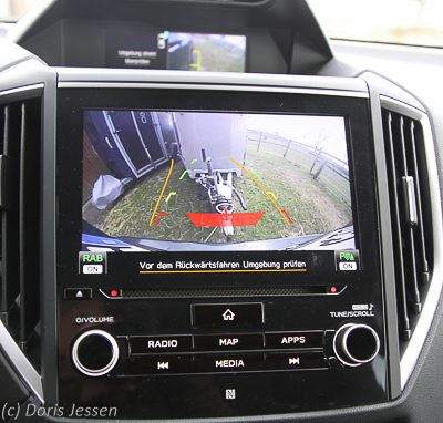 Das Heranfahren an die Anhängerkupplung war mit Hilfe des sehr scharfen Bildes der Rückfahrkamera in Sekundenschnelle erledigt.