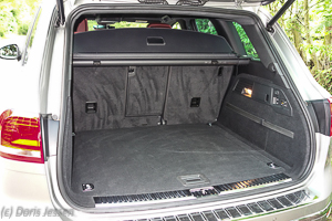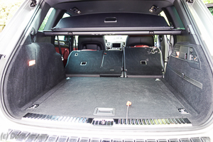 Nicht immer haben wir eine so voluminöse Sattelkammer wie im eingangs genannten Großraumpferdeanhänger. In diesem Fall schluckt der Gepäckraum des Touareg bei normaler Rückbankstellung 697 Liter, bei auf Knopfdruck umgeklappten Sitzen sind es bis zu 1.642 Liter. Das reicht auch für große Westernsättel. Apropos Sattel: Wer alle Hände voll hat, kann die Heckklappe auch mit einem Fußtritt auf ein virtuelles Pedal unter dem Heck öffnen. „Easy Open“ nennt sich dieses Komfortmerkmal. Zudem lässt sich das Heck zum Beladen um 5 cm absenken. Praktisch sind auch allerlei Verzurrösen und Gummistrippen an der Seite, um Gepäck zu stabilisieren. Für eine flexible Beladung oder auch fallweise mitfahrende Hunde ist es auch sehr angenehm, dass die Gepäckraumabdeckung in Form eines herausziehbaren Rollos mit einem Handgriff eingefahren werden kann. Als nicht ganz so bedienungsfreundlich empfanden wir den CD-Wechsler im Kofferraum.