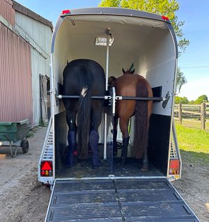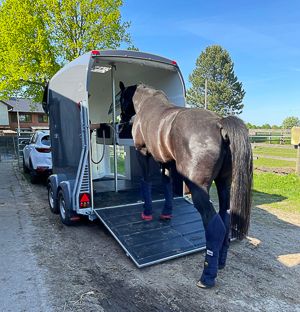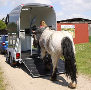 Wir haben den Master mit drei völlig unterschiedlichen Pferden getestet: Einer mit 1,80 m Stockmaß sehr großen, aber transportunerfahrene Stute, einem ebenfalls unerfahrenen 1,55 m kleinen, aber dafür sehr breiten belgischen Kaltblut-Wallach und einer routinierten 1,58 m großen Quarter Horse Stute. Alle stiegen auf Anhieb vertrauensvoll ein, selbst bei den schweren Kandidaten bog sich die Klappe nicht durch.