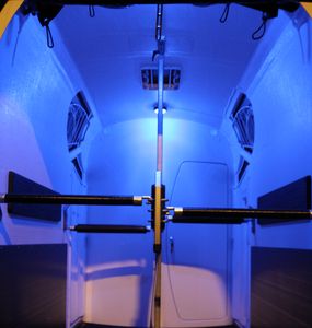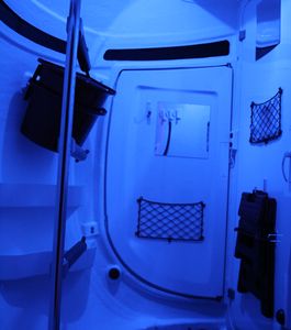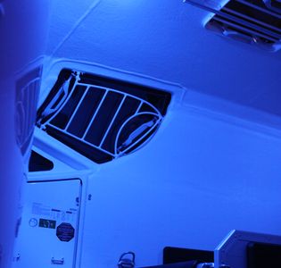 Bei Nacht kann man bei der Innenbeleuchtung neuerdings auch blaues Licht wählen, das besonders beruhigend auf Pferde wirken soll.