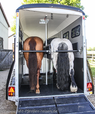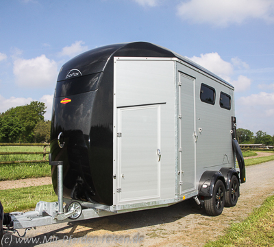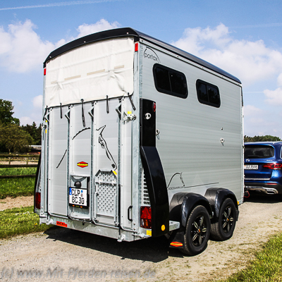 Wir hatten das Modell mit schwarzem Dach und Bug, die Farbe ist aber nach Lust und Laune zu konfigurieren. Speziell Großgewachsene schätzen bei dieser Konstruktion die beiden hohen Inspektionstüren, durch die man zu den Pferden gelangt. Sie sind mit Saugstoppern ausgestattet, die allerdings zumindest der scharfen norddeutschen Brise nicht standhielten.