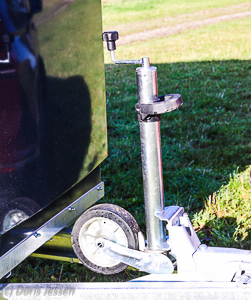 Angekuppelt wird über eine ebenfalls aus dem Hause Knott stammende Guss-Kupplung, die leicht bedienbar ist. Zeigt die Markierung der Einrastkontrolle auf ein grünes Kreuz, können wir sicher sein, dass der Kugelkopf des Zugfahrzeugs korrekt eingerastet ist. Bremsseil und Elektrostecker eingedreht (auch das geht schnell und sicher von der Hand), kurbeln wir das große Automatikstützrad nach oben und los kann es gehen.