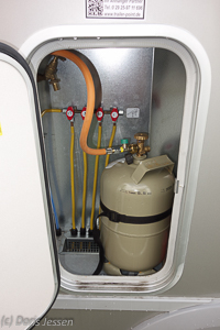 Obwohl das Testmodell Eventa L riesengroß ist, haben die Konstrukteure zumindest in dem Modell, das hier im Test lief, den Stauraum für Pferdeutensilien – Sättel & Co. – eher stiefmütterlich behandelt: Die Sattelkammer ist winzig klein und bietet höchstens zwei Englisch-Sätteln und auf zwei Haken den Trensen Platz. Da sich hierin auch die Batterie für die Stromversorgung des Wohnabteils befindet, ist nicht einmal ein Putzkasten zu verstauen.