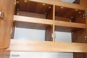 Während die Unterbringungsmöglichkeiten für Sättel & Co. eher spärlich sind, gibt es im Wohnabteil nahezu unbegrenzten Stauraum in eleganten Holzschränken, teilweise mit Schubladen ausgestattet. Und wer sich abends noch ein Video ansehen möchte, kann dies auf dem Fernsehgerät tun. Mit Satellitenantenne kämen sogar die aktuellen Nachrichten oder der Freitagskrimi ins Wohnmobil.