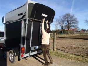 Der Pferdeanhänger punktet – wie die meisten Thule-Modelle – positiv in der Grundausstattung und vor allem durch viel Platz zwischen der dreifach höhenverstellbaren einteiligen weich gepolsterten Bruststange (Polsterung 57 Euro) und Sattelkammer. Hier ist das Handling der Pferde beim Ein- und Aussteigen, Anbinden oder Füttern sehr bequem und sicher, weil selbst kräftigere Personen genug Platz finden, um auch Rabauken mit Ruhe zu versorgen. Das scheint im ersten Moment kein besonders wichtiger Faktor zu sein. Wer aber öfter mit soviel Komfort auf Turnieren oder Urlaubsreisen unterwegs war, lernt diesen Aspekt zu schätzen und fühlt sich in Anhängern anderer Bauart schnell eingeklemmt.