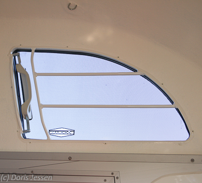 - Vergitterte und getönte Klappfenster